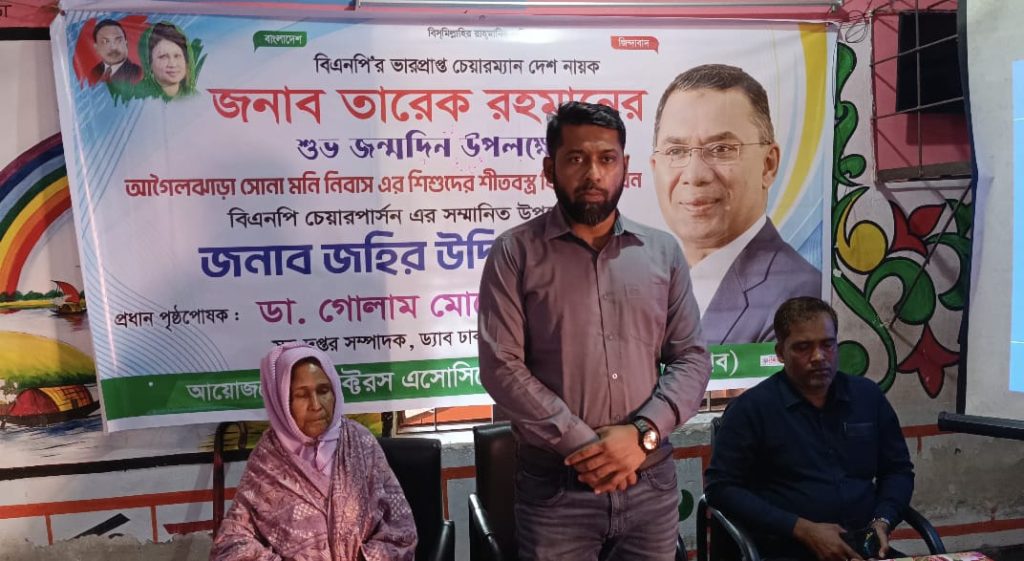 আগৈলঝাড়ায় প্রতিনিধিরবিকাশ রায়ঃ বিএনপির ভারপ্রাপ্ত চেয়ারম্যান তারেক রহমানের জন্মদিন উপলক্ষে বরিশালের আগৈলঝাড়ায় এক মানবিক কর্মসূচি পালিত হয়েছে। সেখানে বরিশাল বিভাগীয় ছোট মনি নিবাসের শিশুদের মাঝে শীতবস্ত্র বিতরণ করেছেন দলের জ্যেষ্ঠ নেতারা। অনুষ্ঠানে ভিডিও কনফারেন্সে যুক্ত হয়ে শিশুদের খোঁজখবর নেন বিএনপি চেয়ারপারসনের উপদেষ্টা জহির উদ্দিন স্বপন। শীতের শুরুতেই আগৈলঝাড়ার বরিশাল বিভাগীয় বেবি হোম বা ছোট মনি নিবাসের এতিম ও সুবিধাবঞ্চিত শিশুদের মাঝে উষ্ণতা ছড়ানোর এই উদ্যোগ। বিএনপির ভারপ্রাপ্ত চেয়ারম্যান তারেক রহমানের জন্মদিনকে কেন্দ্র করে এই শীতবস্ত্র বিতরণ কর্মসূচির আয়োজন করা হয়। অনুষ্ঠানে প্রধান অতিথি হিসেবে ভিডিও কনফারেন্সের মাধ্যমে যুক্ত হন বিএনপি চেয়ারপারসনের উপদেষ্টা ও বরিশাল-১ আসনে বিএনপির মনোনীত সংসদ সদস্য প্রার্থী জহির উদ্দিন স্বপন। প্রযুক্তির সহায়তায় তিনি ছোট মনি নিবাসের সোনামণিদের সঙ্গে সরাসরি যুক্ত হয়ে শুভেচ্ছা বিনিময় করেন। নিজের বক্তব্যে জহির উদ্দিন স্বপন শিশুদের উজ্জ্বল ভবিষ্যৎ ও শিক্ষার গুরুত্ব নিয়ে কথা বলেন। তিনি বলেন, শীতের কষ্ট লাঘব এবং শিশুদের পাশে দাঁড়ানো আমাদের সকলের সামাজিক দায়বদ্ধতা। এই মহতী আয়োজনের প্রধান পৃষ্ঠপোষক ছিলেন ড্যাব ঢাকা মেডিকেল কলেজ শাখার সহ-দপ্তর সম্পাদক ডাক্তার গোলাম মোর্শেদ সজীব। এসময় স্থানীয় বিএনপি ও অঙ্গসংগঠনের নেতৃবৃন্দ উপস্থিত থেকে শিশুদের হাতে শীতের নতুন পোশাক তুলে দেন।