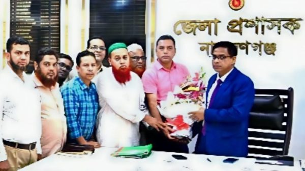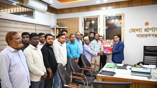 না’গঞ্জের নবাগত জেলা প্রশাসককে ভূমি অফিসার্স কল্যাণ সমিতির ফুলেল শুভেচ্ছা